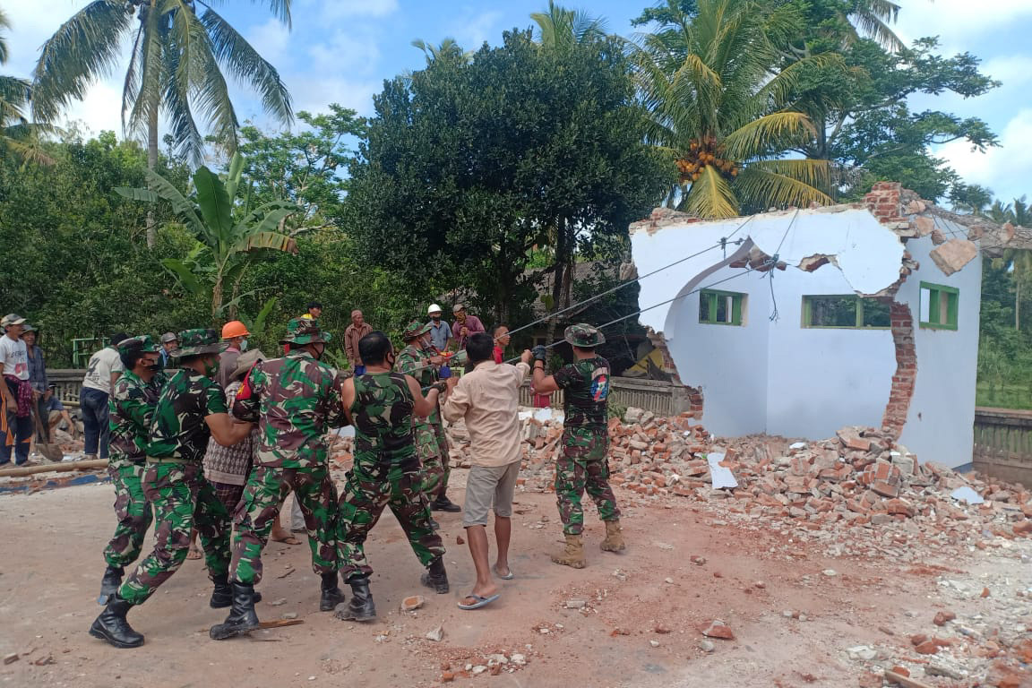 “Dengan bergotong royong membongkar bangunan lama masjid, mudah-mudahan pembangunan rehab masjid ini bisa cepat selesai,” ujar Kapten Chb Heri Susanto di sela-sela kegiatan pembongkaran bangunan Masjid Nurul Huda.