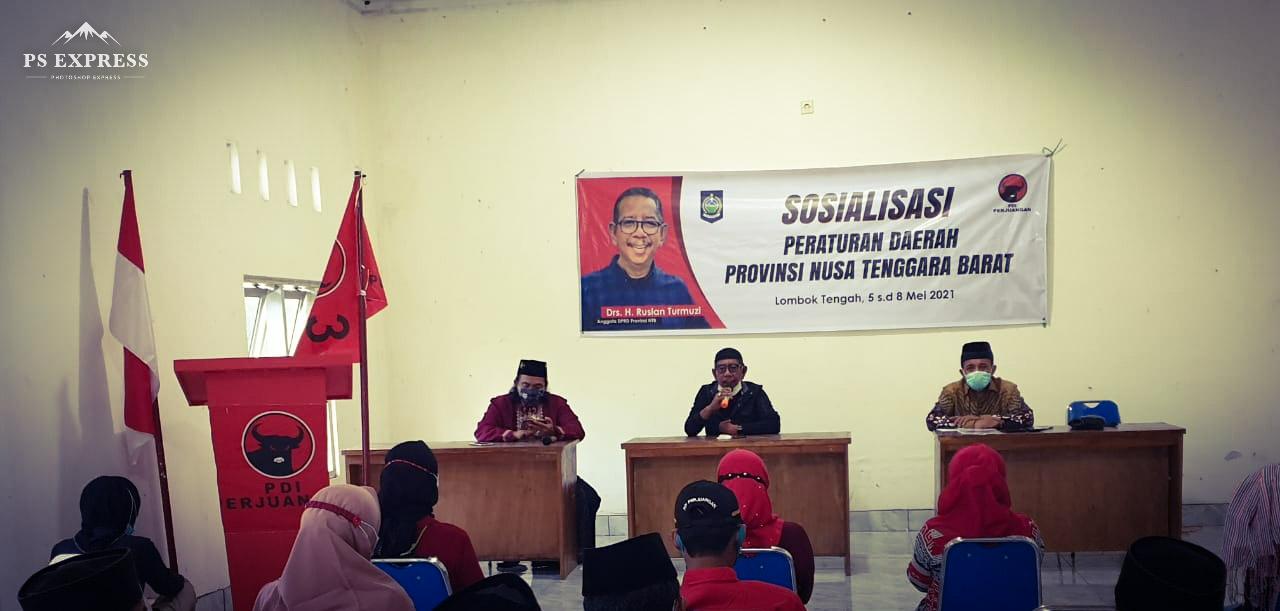 Lombok Tengah, MediaMe.Id. Komisi IV DPRD NTB, Ruslan Turmuzi melakukan sosialisasi terhadap Peraturan Daerah (Perda) NTB Nomor 3/ 2020 tentang Ekonomi Kreatif dan Perda Nomor 7/2020 tentang Penanggulangan Penyakit Menular di Kantor PDI Perjuangan Lombok Tengah, Kota Praya, Loteng, Kamis, 6 Mei 2021.