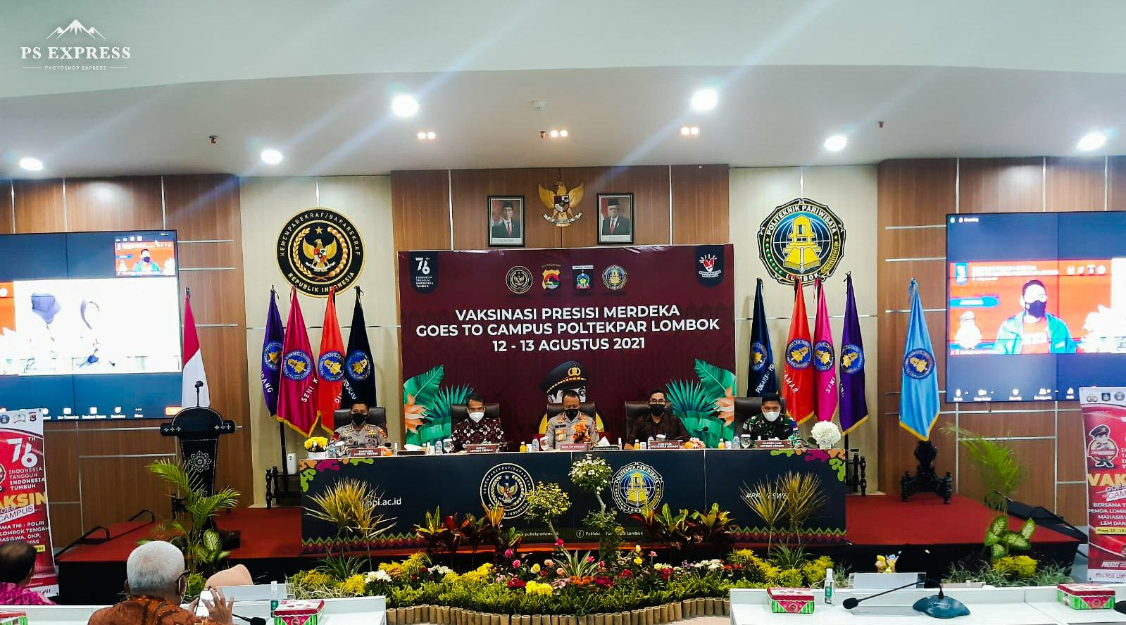 Lombok Tengah, MediaMe.Id. Polda Nusa Tenggara Barat menggelar vaksin Presisi Merdeka Goes To Campus bertempat di Kampus Poltekpar Lombok, desa Puyung kecamatan Jonggat. Vaksin goes to campus digelar selama dua hari mulai dari tanggal 12 sampai 13 Agustus 2021.