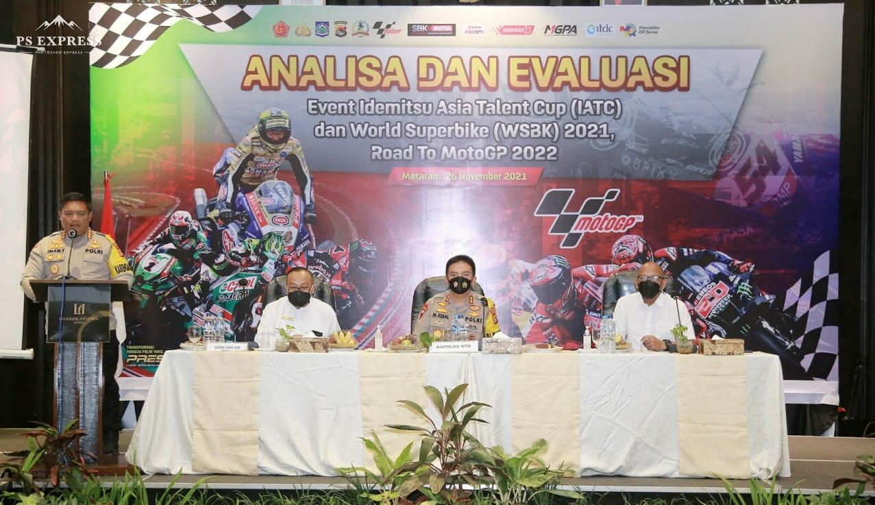 Mataram, MediaMe.Id. Kepolisian Daerah Nusa Tenggara Barat (Polda NTB) melakukan analisa dan evaluasi (Anev) kegiatan Idemitsu Asia Talen Cup (IATC) dan World Superbike (WSBK) Mandalika di Ballroom Lombok Astoria Hotel, Kota Mataram, Provinsi Nusa Tenggara Barat (NTB), Jumat (26/11/2021).