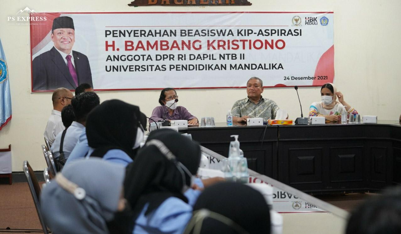 Mataram, MediaMe.Id. Setelah memberikan bantuan untuk Bus sekolah di salah satu SMP Negeri di Kab. Loteng, aksi peduli pendidikan HBK dilanjutkan dengan menyambangi perguruan tinggi. Kali ini, anggota DPR RI dari Dapil NTB 2/Pulau Lombok ini, H. Bambang Kristiono, SE (HBK) memberi bantuan beasiswa untuk 43 mahasiswa Universitas Pendidikan Mataram (Undikma), Jumat (24/12/2021).