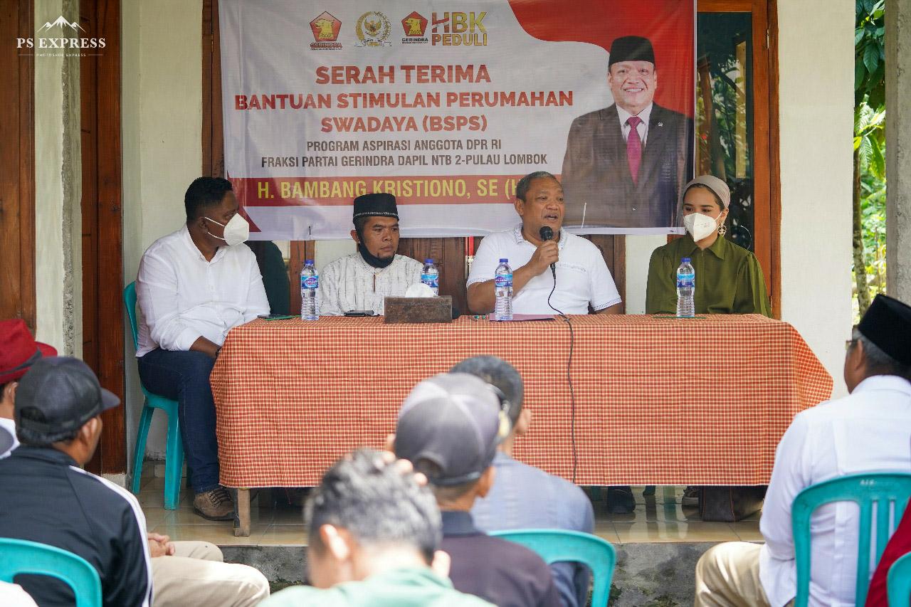 Mataram, MediaMe.Id Anggota DPR RI Dapil NTB 2/P. Lombok, H. Bambang Kristiono, SE (HBK) secara resmi menyerahkan rumah yang sudah direnovasi melalui program Bantuan Stimulan Perumahan Swadaya (BSPS). Penyerahan dilakukan secara simbolis dengan memberikan kunci rumah. Total ada 50 rumah yang direnovasi melalui program BSPS tahun 2021.