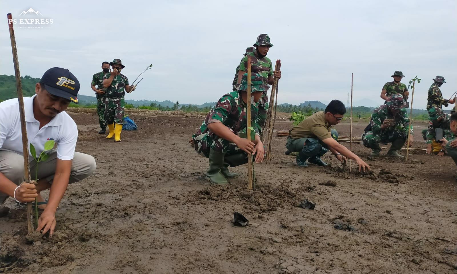 Dandim menjelaskan tumbuhan mangrove adalah tumbuhan yang tumbuh di daerah pasang surut, terutama di pantai yang terlindung, atau muara sungai yang tergenang pada saat pasang dan bebas dari genangan pada saat surut yang komunitas tumbuhannya bertoleransi terhadap salinitas.