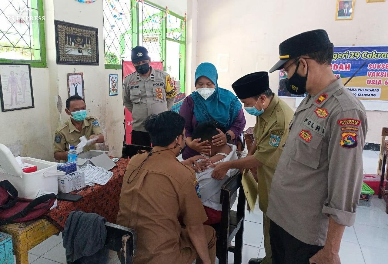 Selasa (22/02/2022) TNI-Polri bersinergi dengan team Vaksinator dari PKM Mataram sejumlah 9 orang melaksanakan kegiatan vaksin dengan target sasaran 535 anak.