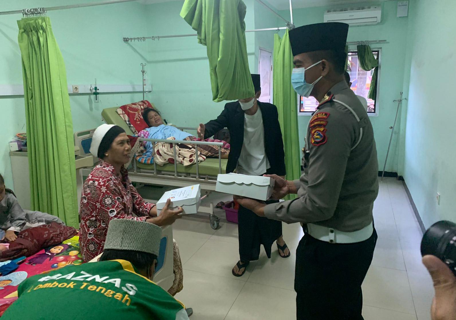 Lanjut kasat lantas, tidak hanya berbagi kepada tenaga kesehatan, petugas juga berbagi kepada pasien RSUD Praya yang membutuhkan makanan menjelang buka puasa.